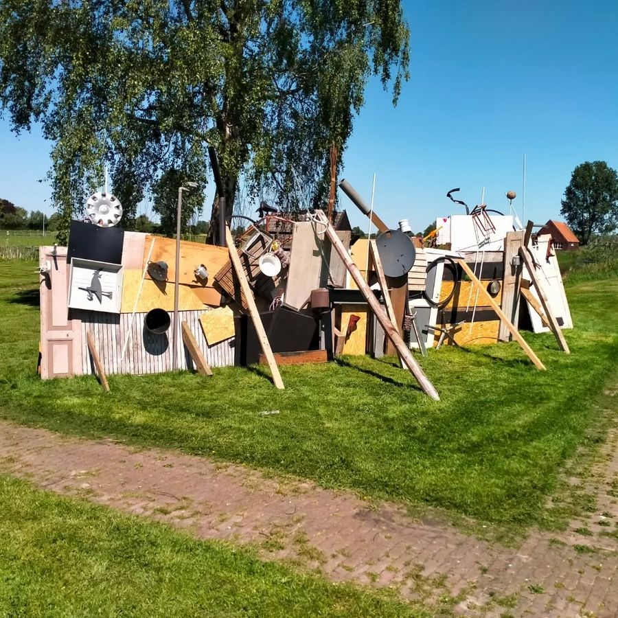 Het werk ontstaat ter plekke. Wat er gisteren nog niet was, kan morgen verschijnen. Onderdelen worden toegevoegd, verschoven of weer weggehaald. Merzbau Barricade beweegt mee met de tijd, de ruimte en het materiaal dat beschikbaar is.