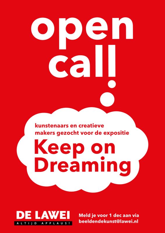 De Lawei is voor deze expositie nog op zoek naar kunstenaars en creatieve makers wiens werk (of afzonderlijke werken) in het teken staat van dromen, een droomwereld of anderszins te maken hebben met dromen.
