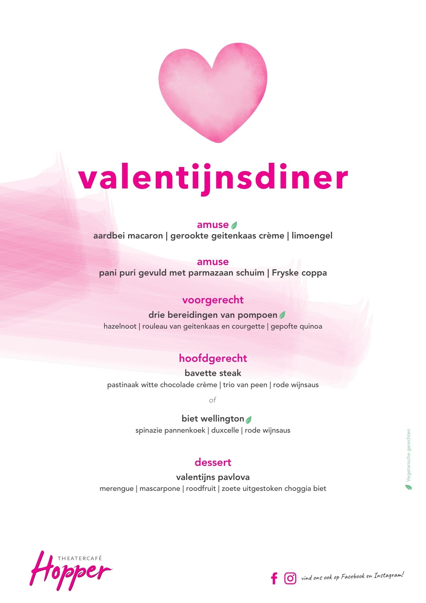 Vier de liefde tijdens het Valentijnsdiner. Laat je verwennen met een zorgvuldig samengesteld driegangenmenu, bereid door onze getalenteerde chefs. De avond begint met een verfijnde amuse, gevolgd door een reeks verrukkelijke gerechten die je smaakpapillen prikkelen. Dit is het perfecte moment om samen te delen in een romantisch diner met iemand die je dierbaar is. Proost op de liefde!