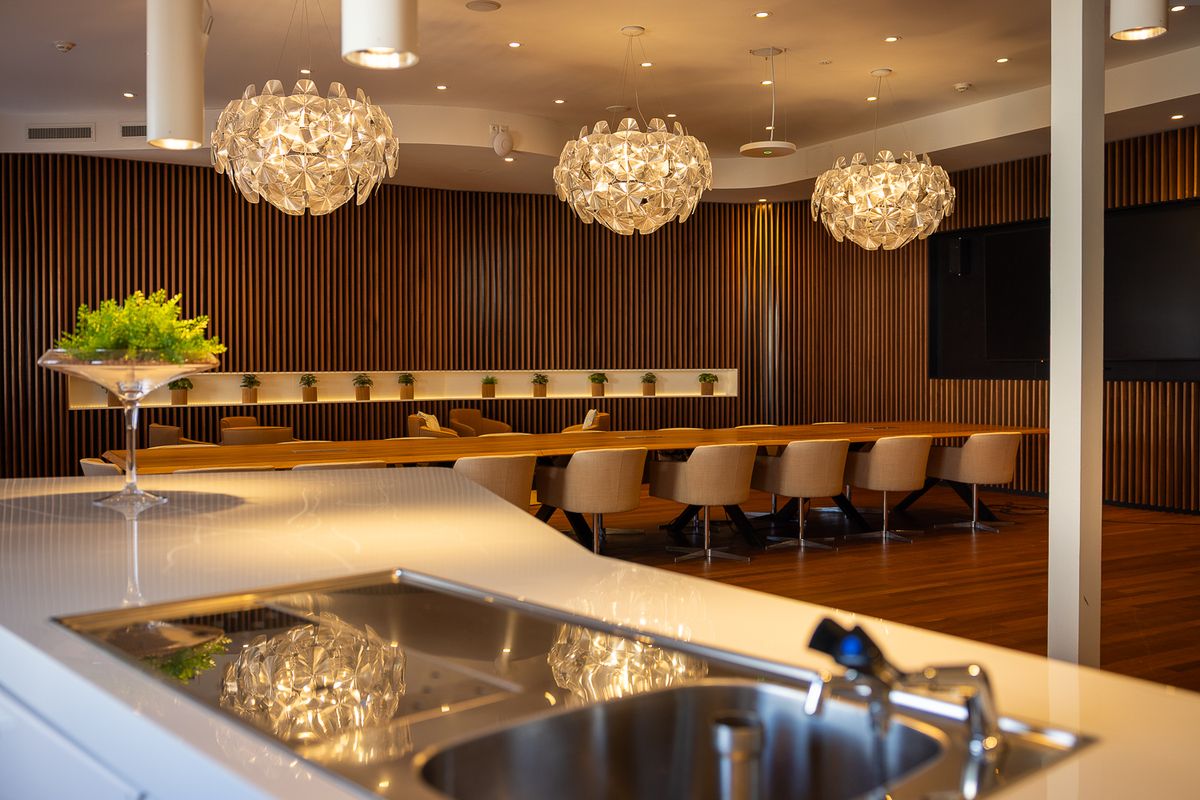De 1e kamer is een ingerichte vergaderkamer met ruimte voor maximaal 18 personen. Deze plek is uitermate geschikt voor een rustige en ongestoorde vergadering. In de 1e kamer vind je alle denkbare gemakken, zoals een massief eikenhouten tafel met 18 comfortabele stoelen en een eigen bar en lounge. Hier kun je ongestoord vergaderen. Bovendien staat de nieuwste techniek in deze ruimte tot je beschikking.