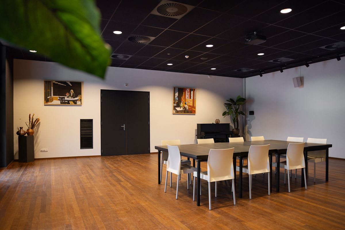 De 2e kamer is perfect voor kleinschalige bijeenkomsten. In deze ruimte van 81m2 passen 25 - 70 personen. Deze ruimte is geschikt voor een kleinere samenkomst of besloten vergadering. Het is een rustige ruimte met veel ramen, waardoor prettig daglicht binnenkomt. Zoek jij een ruimte voor vergaderingen, kleinere bijeenkomsten, een borrel of een workshop? Dan heb je gevonden wat je zocht.