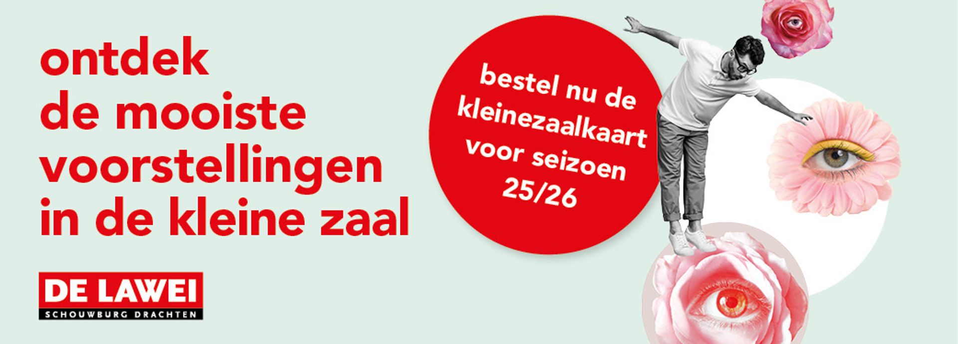 Al jaren een groot succes is onze kleinezaalkaart. Met deze kaart kun je regelmatig een voorstelling in onze kleine zaal bezoeken. De kleine zaal zit vol verrassingen, avontuur en eigenzinnigheid. Laat je verrassen in de kleine zaal...